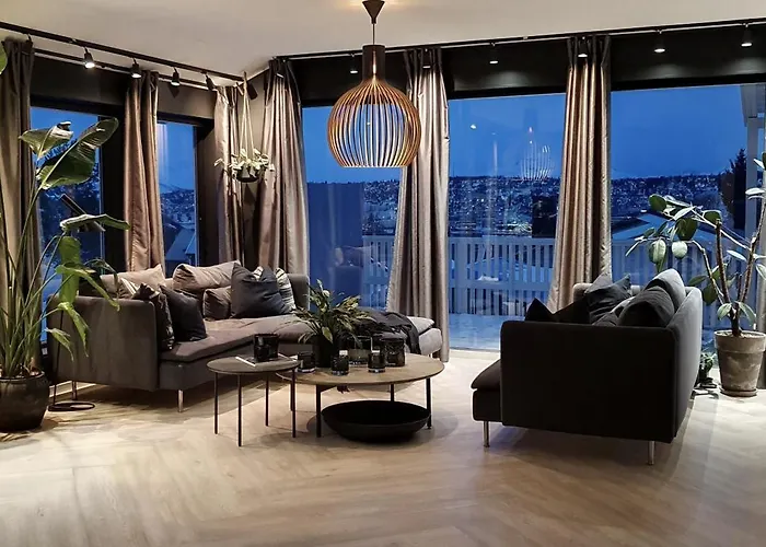 For families or groups - Villa in central Tromsdalen Tromsø oferuje bliskość pobliskich atrakcji turystycznych, takich jak Sherpatrappa w odległości 5 min spacerem. Willa oferuje parking prywatny oraz taras z widokiem na górę.